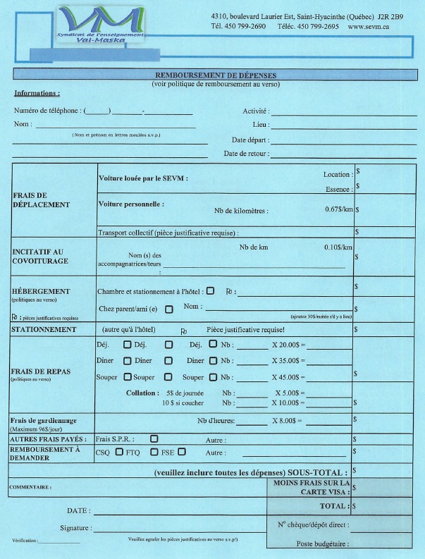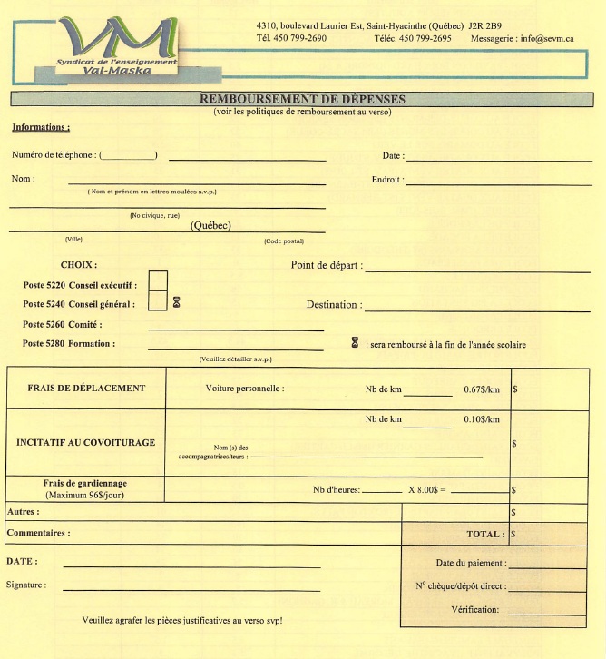 REMBOURSEMENT DES DÉPENSES